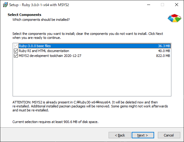 Ruby と MSYS2 のインストール